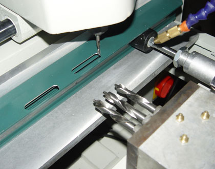 垂直方向在操縱桿作用下,仿形觸頭桿沿仿形板孔移動,帶動銑刀按1:1的比例進行仿形銑削;水平方向電機通過齒輪箱帶動三個專用鉆頭,在鉆孔進給手柄作用下實現三個孔的同時鉆削。